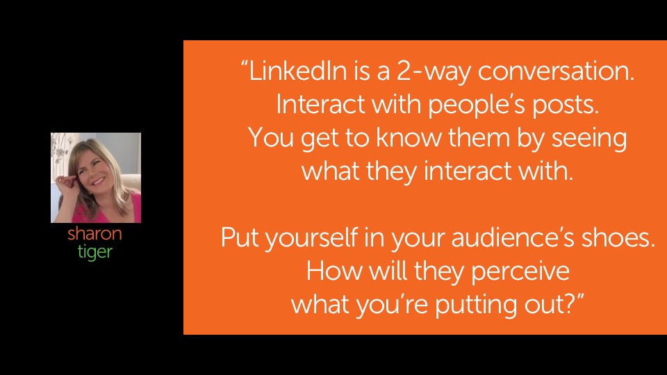 To be memorable, you must identify and use your strengths. And then, convert to digital what made you memorable in-person. Sharon Tiger advises, “Let your personality shine. People want to do business with people.”
