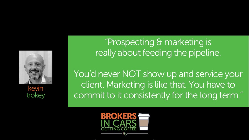 I like the way Kevin Trokey views consistency from the perspective of a sales pipeline. Click here to hear him share his experience in our “Brokers in Cars Getting Coffee” interview (3:22 minute mark).