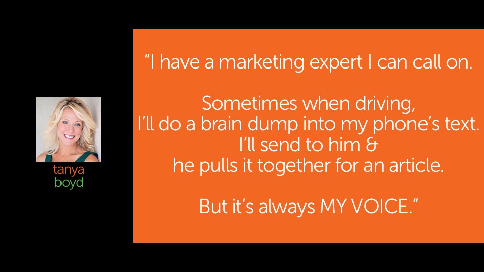 You know your prospects. You know your clients. Remember how in Tip #1 you worked hard to be memorable in your approach? A brand-new internal or external marketing expert doesn’t know the “voice” you want to create. You can’t hand this off without closely managing the ideas and the tone they put out in your name. Tanya shares how she makes good use of her time, while keeping true to her brand voice.