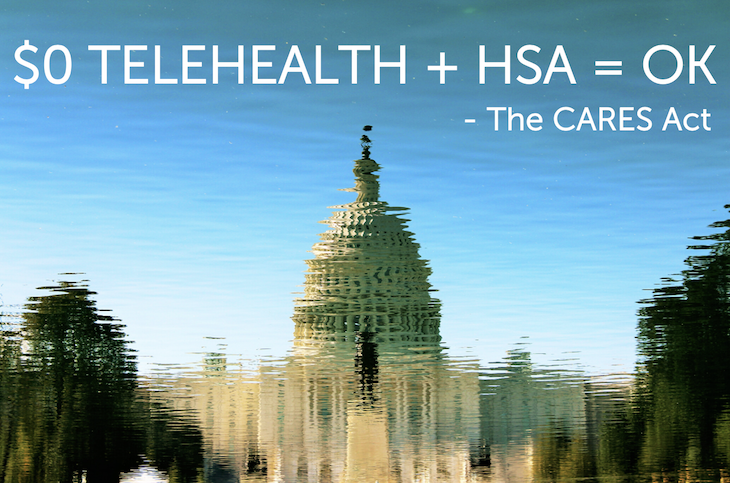 The CARES Act clarifies that a $0-visit-fee telehealth service is now valid alongside an HSA-qualified plan.