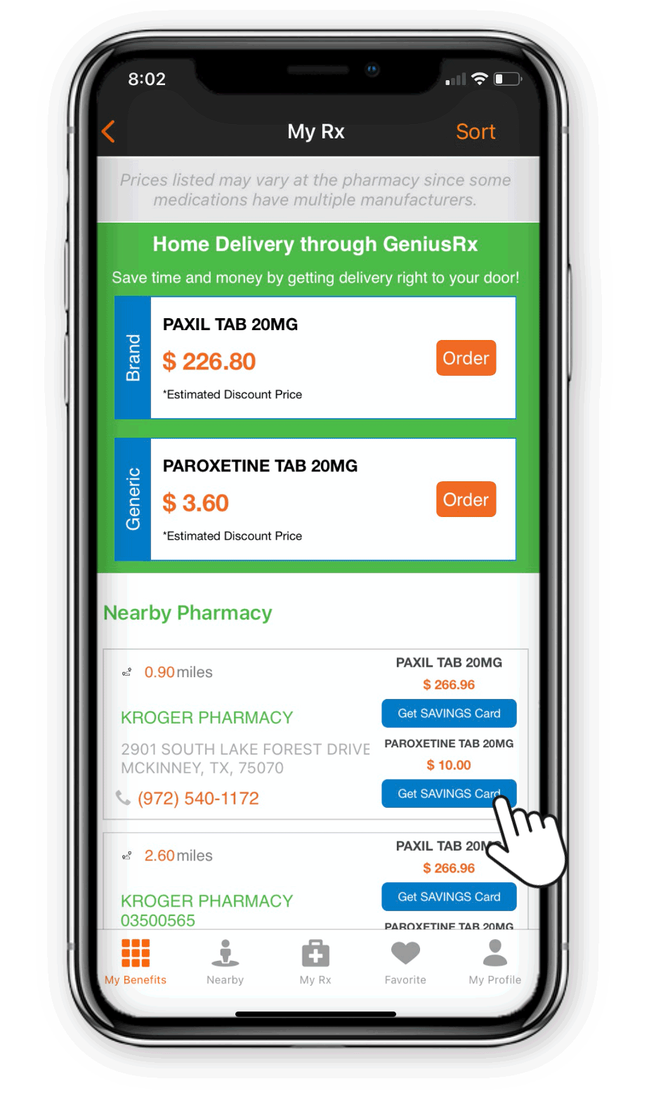 Choose your preferred option from generic and brand name pricing available. Then, download a Savings Card to claim your price at a local pharmacy.